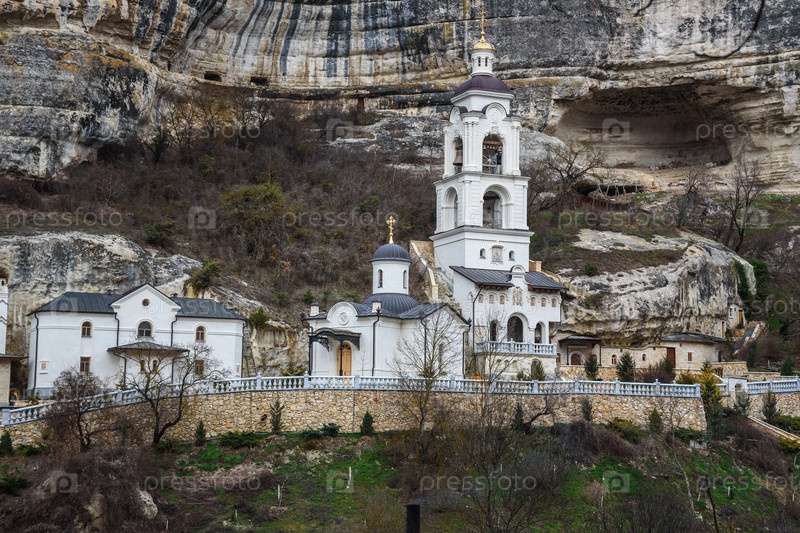Вид на Успенский пещерный монастырь в Бахчисарае весной. Крым