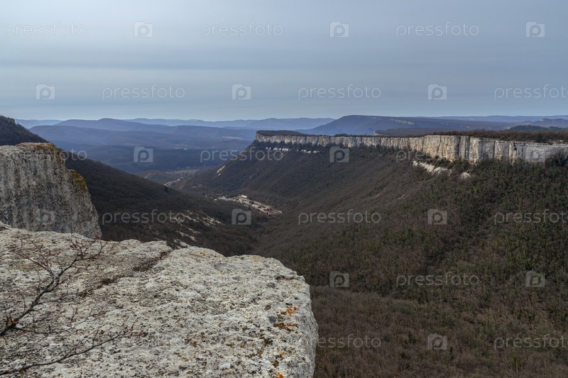 Вид с Бешик-Тау на священную гору караимов весной. Бахчисарай, Крым