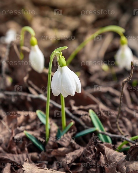 Первые весенние подснежники в дикой природе. Цветы Галантуса