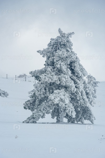 Заснеженная сосна на горе Ай-Петри после метели. Крым