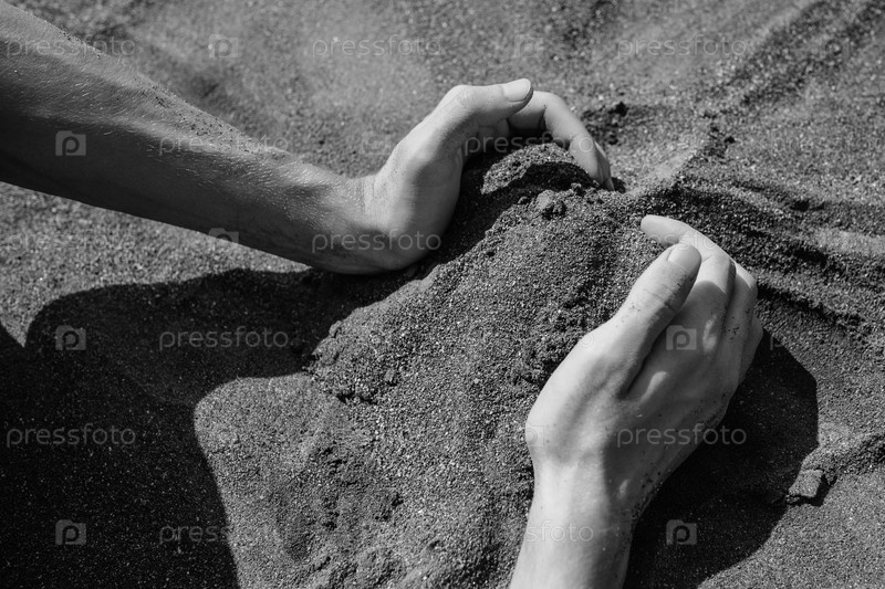 Мужские руки и песок в пустыне
