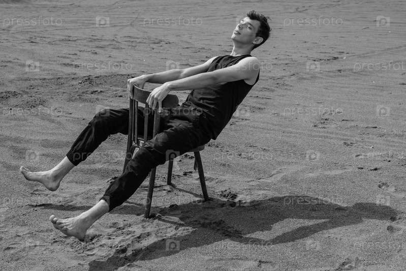 Одинокий человек сидит на стуле в пустыне