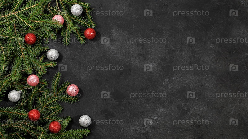 Рождественский и новогодний макет для дизайна, экранный баннер, праздничный фон с еловыми ветками, сосновыми шишками и украшениями с местом для текста, открытка,