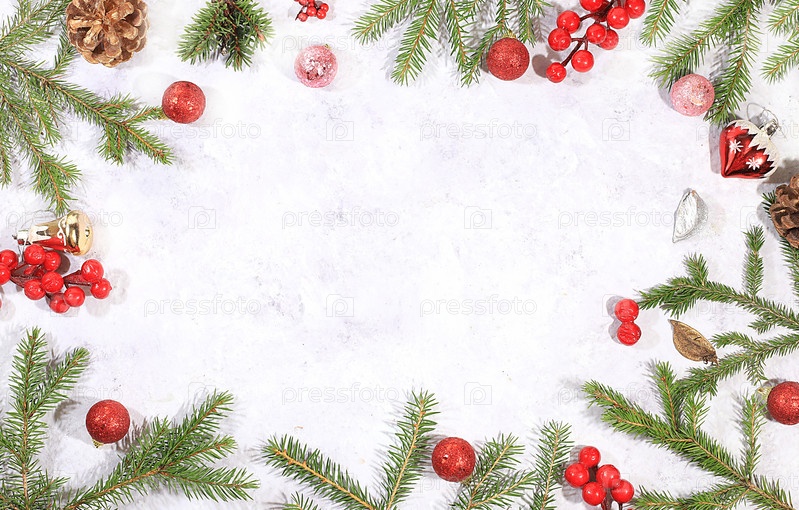 Рождественский и новогодний макет для дизайна, экранный баннер, праздничный фон с еловыми ветвями, сосновыми шишками и украшениями с местом для текста, открытка, выборочный фокус