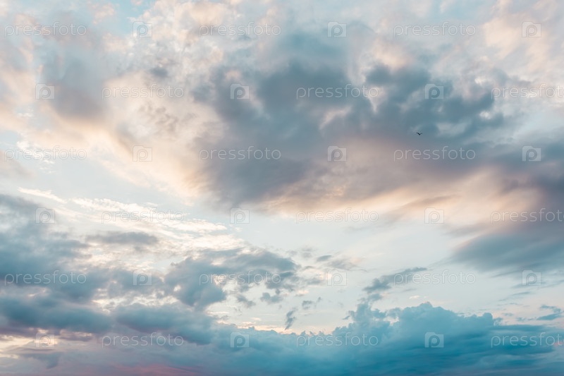 Голубое небо с пастельными тонами. Мягкая текстура пушистых облаков