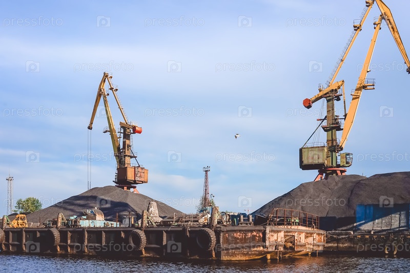 Порт большого русского города с кораблями