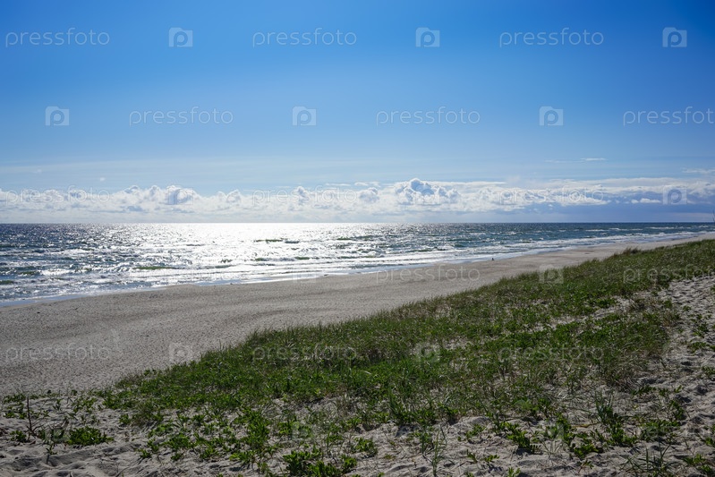 Морской пейзаж Балтийского моря с прибрежными песчаными дюнами Куршской косы
