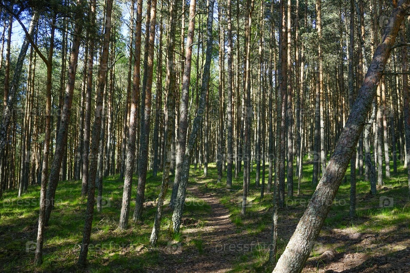 Яркое солнце, просачивающееся сквозь листву деревьев в лесу