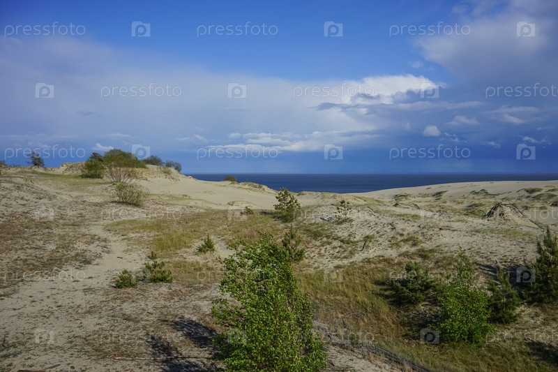 Морской пейзаж Балтийского моря с прибрежными песчаными дюнами Куршской косы