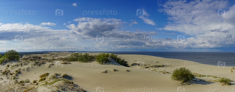 Морской пейзаж Балтийского моря с прибрежными песчаными дюнами Куршской косы
