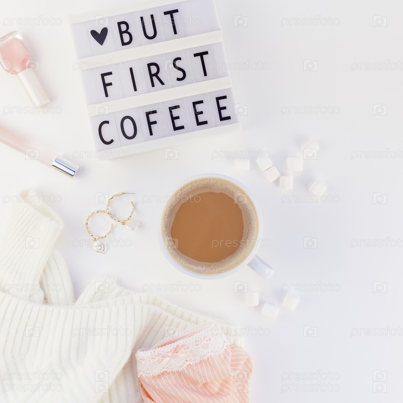 Но первый текст о кофе на лайтбоксе с чашкой кофе