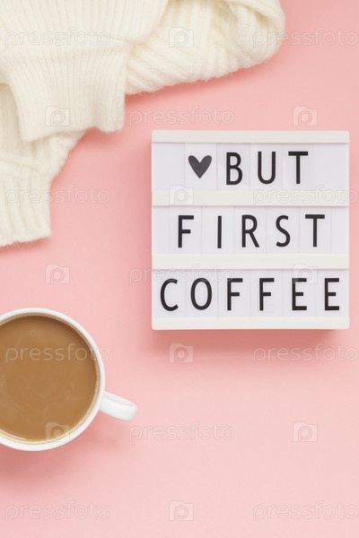 Но первый текст о кофе на лайтбоксе с чашкой кофе