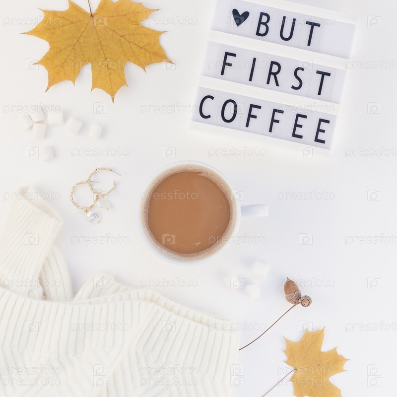 Но первый текст о кофе на лайтбоксе с чашкой кофе