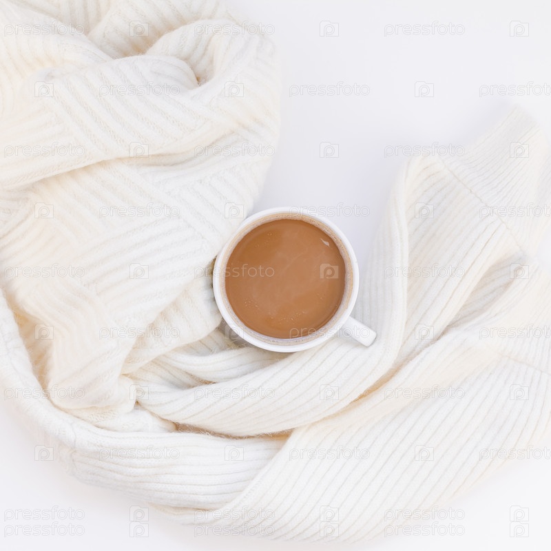 Уютный белый теплый свитер и чашка кофе Осеннее настроение