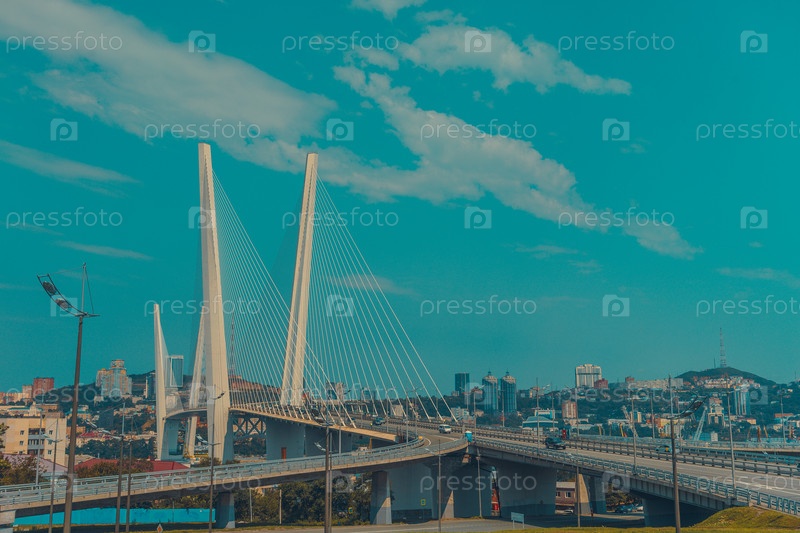 Городской пейзаж с видом на Золотой мост и дорогу