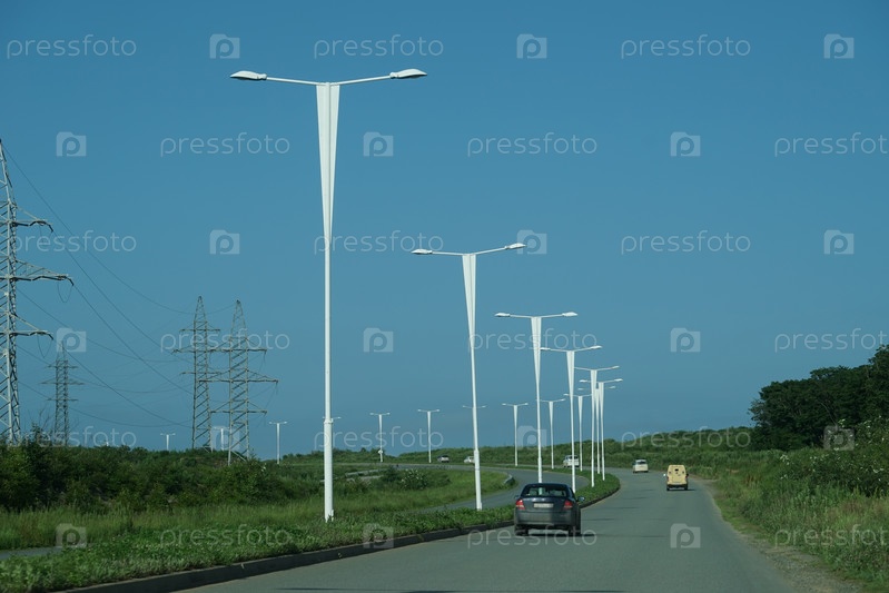 Пейзаж с дорогой и машинами на острове Русский