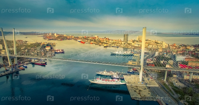 Воздушный обзор Золотого моста. Владивосток, Приморский край