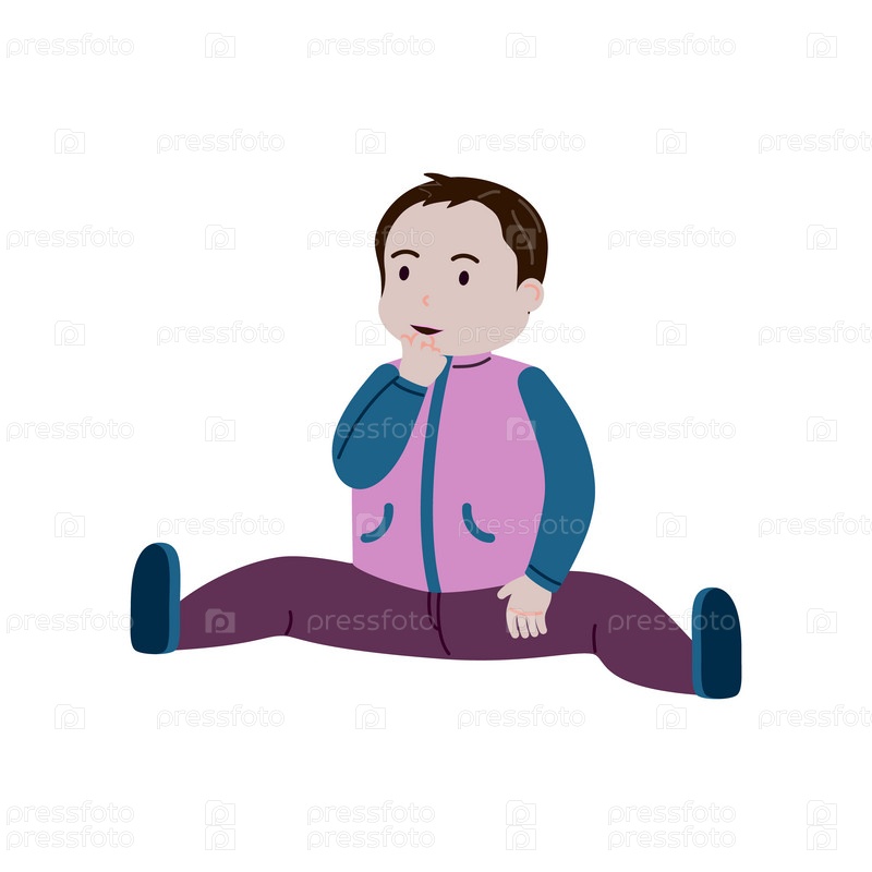Ребенок сидит в одежде и обуви. Маленький ребенок мальчик сидит
