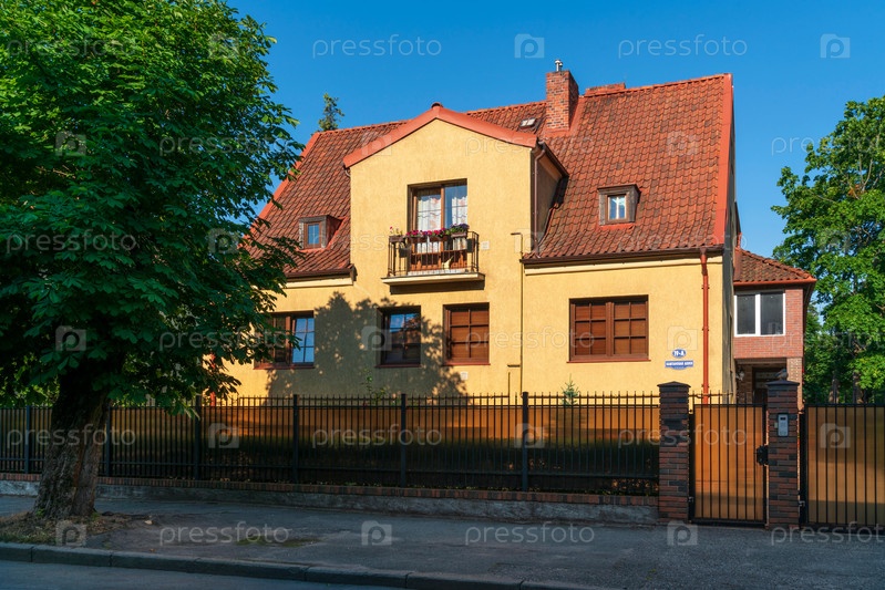 Вид на виллу в историческом районе Амалиенау (бывший престижный пригород Кенигсберга) в солнечный летний день, Калининград, Россия