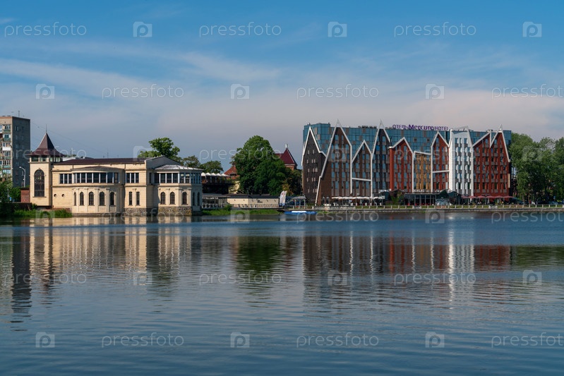 Вид на набережную Верхнего пруда в солнечный летний день, Калининград, Россия