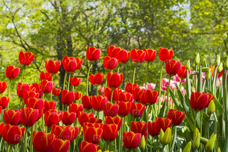 Красивые красные тюльпаны на ярком весеннем солнцем