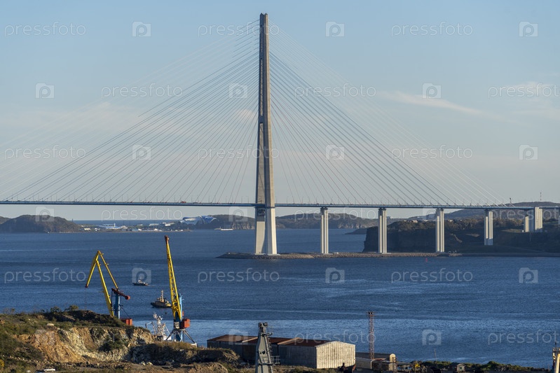 Морской пейзаж с видом на Русский мост. Владивосток, Россия
