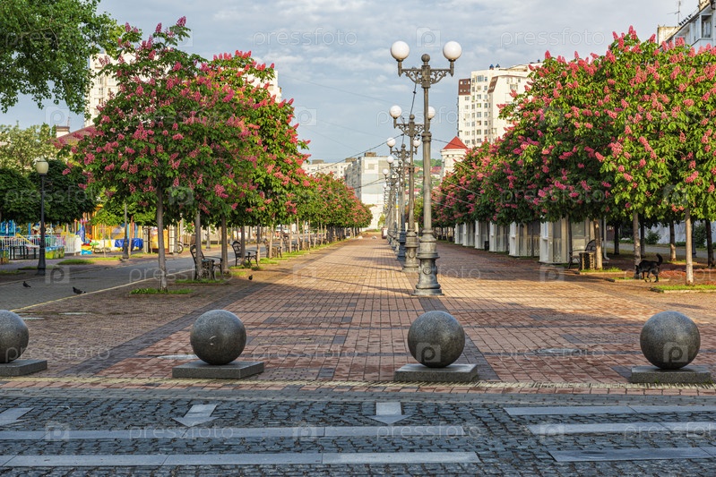 Черняховский бульвар с цветущими каштанами в Новороссийске