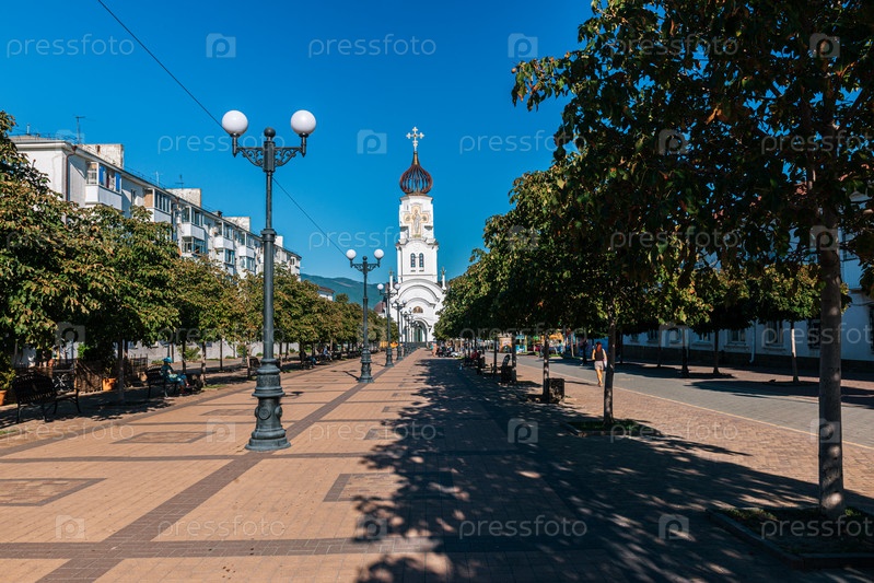 Центр города Новороссийск улица Черняховского ведет к церкви Петра и Февронии