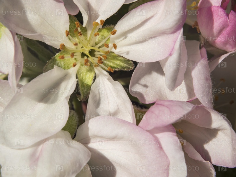 Крупный план цветов яблони. Макрос цветков яблони. Яблоневый цвет