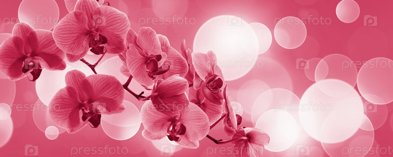 Нежный фон с фиолетовыми цветами орхидеи для открыток и графических работ. Баннер, панорама с местом для текста