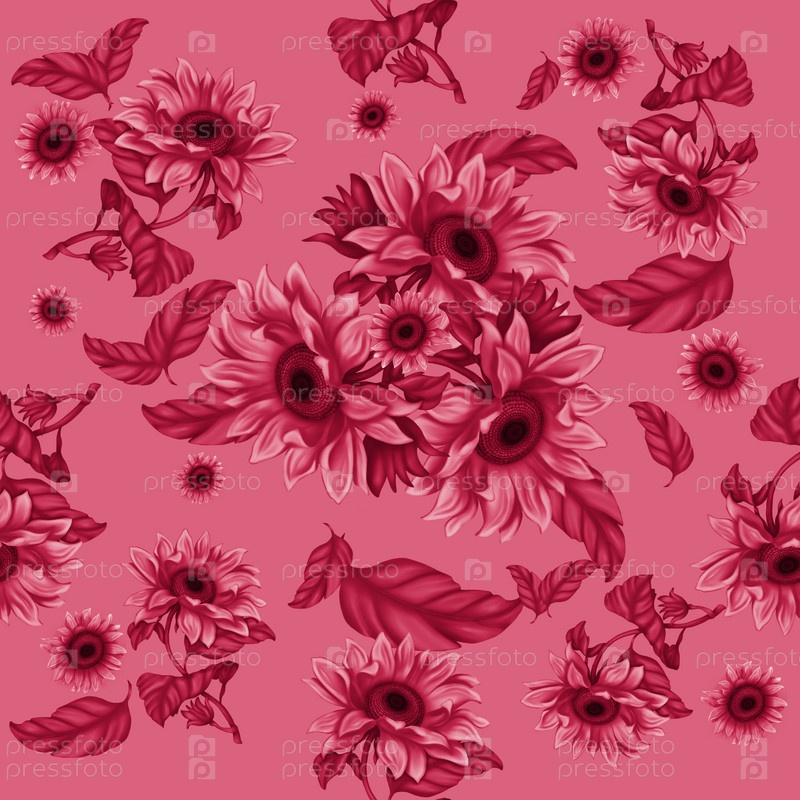 Бесшовный фон для печати. Иллюстрация цветов подсолнуха. Яркие цветы на светлом фоне