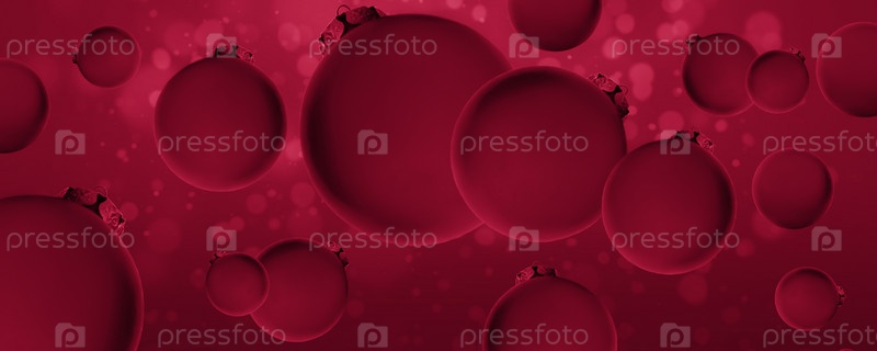 Рождественский баннер. Красные шарики на блестящем фоне. Рождество, праздник, поздравления. Фон для рекламы и бизнеса