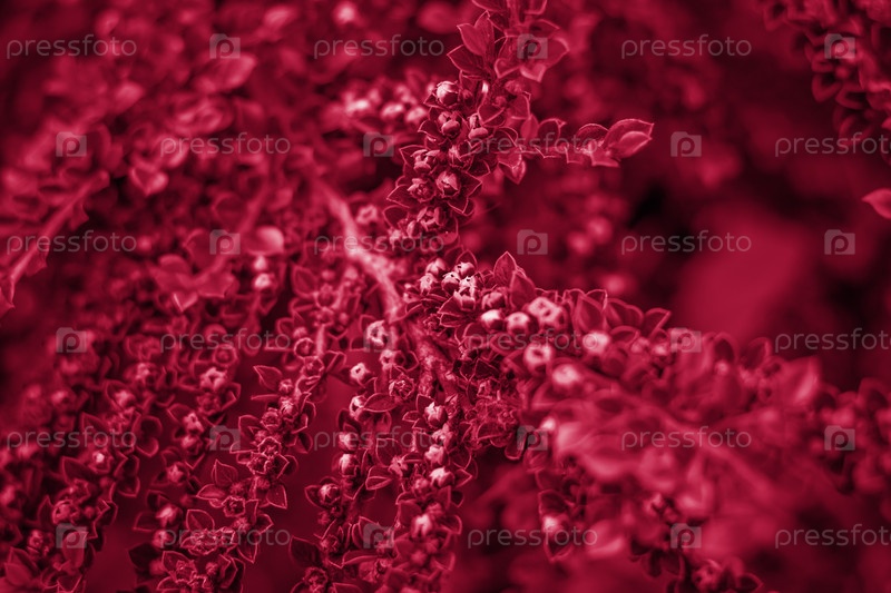 Кустарник с яркими мелкими цветками кизила. Крупный план с копией пространства на фоне природного ландшафта. Натуральные обои. Выборочный фокус