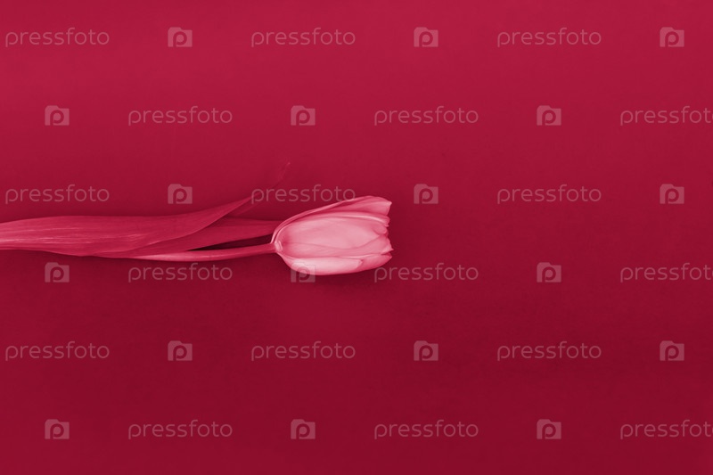 Желтый тюльпан на красном фоне. Весенние цветы, Концепция весны или праздника, 8 марта, Международный женский день,