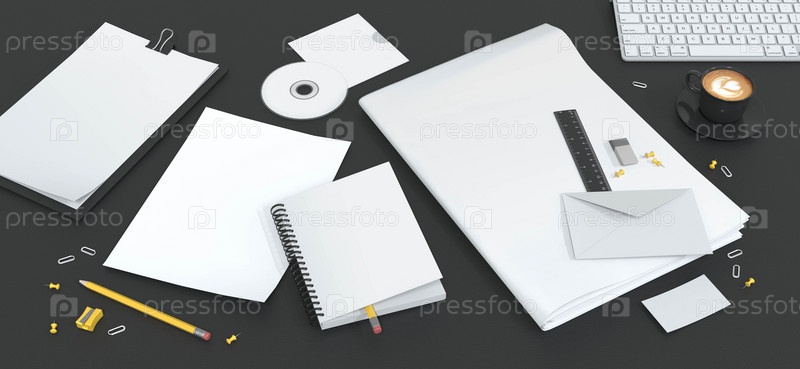 Пустой шаблон листов формата А4, блокнота, газеты, конверта, визитной карточки и компакт-диска