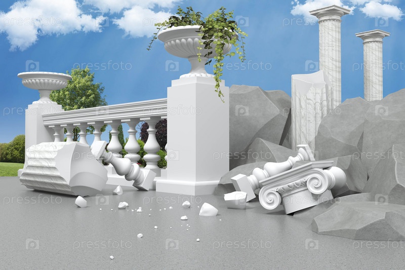 Красивые белые древнегреческие архитектурные руины на фоне голубого неба