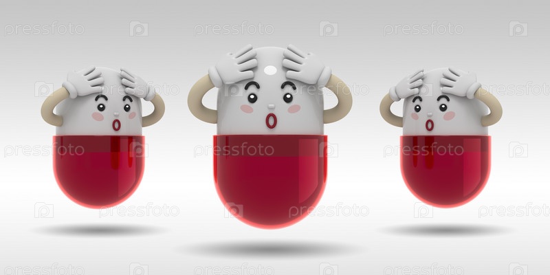 Медицинский персонаж с мимикой в трех проекциях. Персонаж держится за голову обеими руками