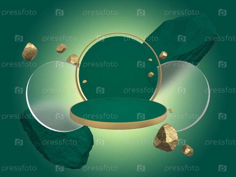 Зеленый фон из камня и стекла, минималистский макет для подиума или витрины