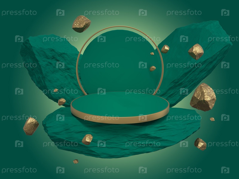 Абстрактный геометрический зеленый фон из каменных форм. Макет для подиума или витрины
