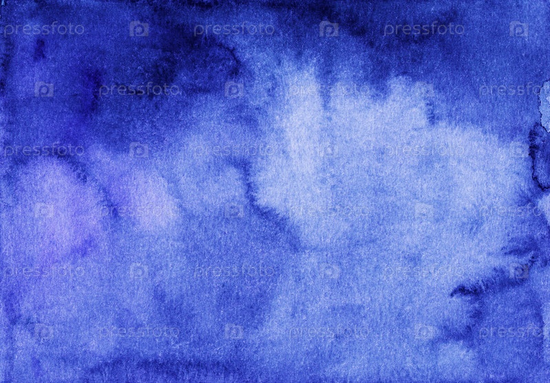 Акварель глубокий королевский синий градиент фона. Акварельный фон ручной росписи. Пятна на бумаге