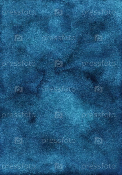 Акварель глубокие чернила синий фон текстуры, пятна на бумаге. Ручная роспись старого акварельного фона