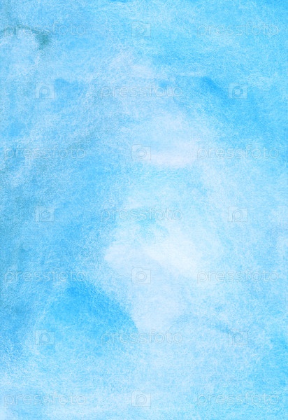 Акварель светло-голубой фоновой текстуры. Акварель небесно-голубые пятна на бумаге
