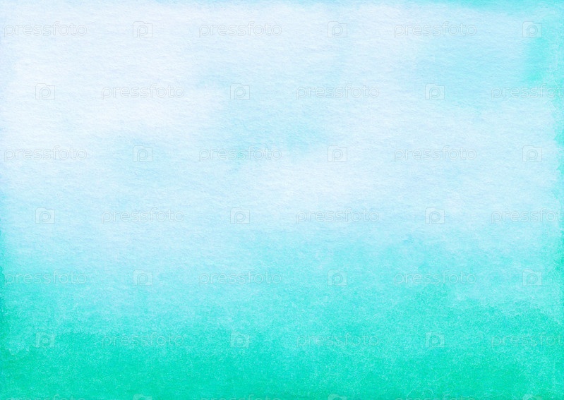 Акварель светло-сине-зеленый омбре фон ручной росписи. Пастельно-голубые градиентные пятна на бумаге