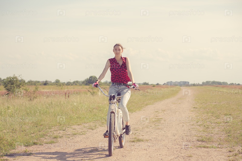 Молодая женщина велосипедист