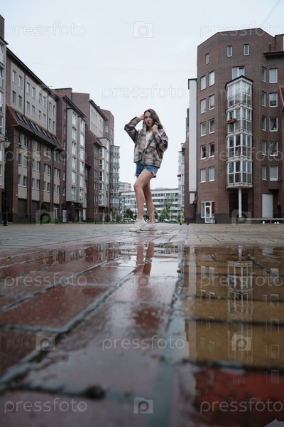 Девушка возле лужи