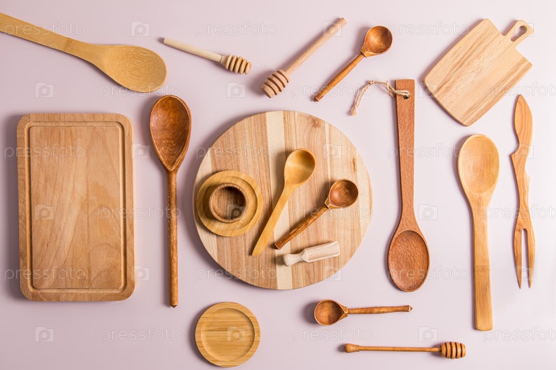 Экологически чистые предметы современной кухонной утвари на фоне пастельборда. вид сверху. плоская кладка. концепция без пластика и отходов
