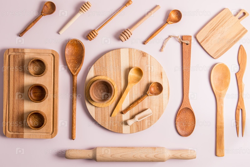 Стильный современный кухонный фон из экологически чистой кухонной утвари. вид сверху. пастельный фон. концепция без пластика и отходов