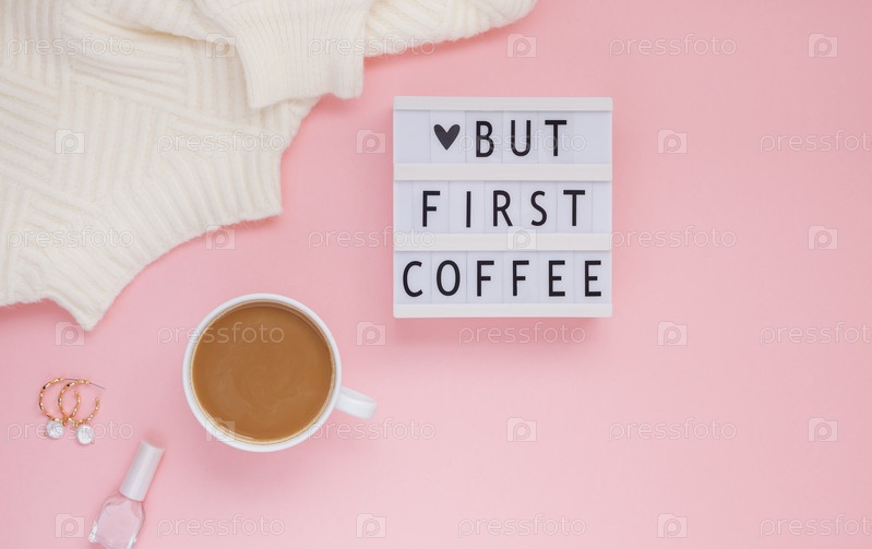 Но первый текст о кофе на лайтбоксе с чашкой кофе