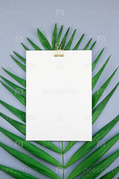 Макет пустой белой открытки тропических пальмовых листьев