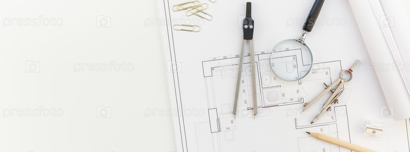 Рабочее место дизайнера интерьера с планом дома